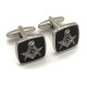 Black Enamel Freemasons Square & Compasses Silver Plated Cufflinks